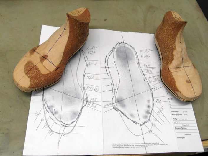 Die orthopädischen Maßschuhe aus unserer Werkstatt in Lengenfeld haben alles, was maßgefertigte Schuhe auszeichnet: moderne Form, ausgeklügelte Konstruktion und hohe Funktionalität. Die Einzelanfertigungen werden für den erkrankten, funktionsgestörten und/oder stark deformierten Fuß nach besonderem Maß- und Modellverfahren erstellt und nach individuellem Leisten handwerklich gefertigt.