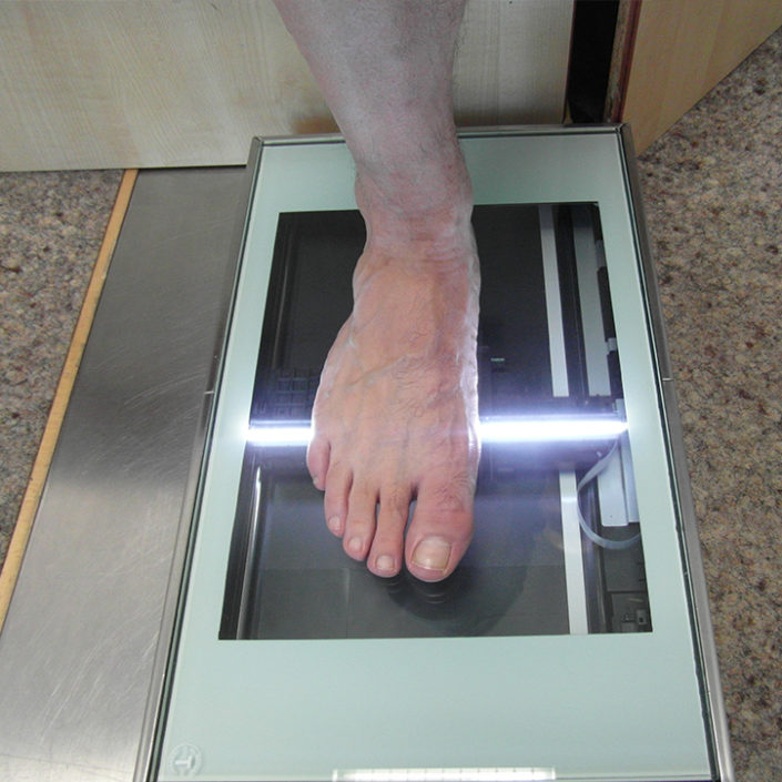 Mit unserer modernen Technik vermessen wir die Fußsohle dreidimensional, anschließend werten wir die Ergebnisse aus und bearbeiten bzw. korrigieren jede einzelne Fußregion millimetergenau am PC, um eine absolut passgenaue Einlage dann mittels CNC-Fräse herstellen zu können.